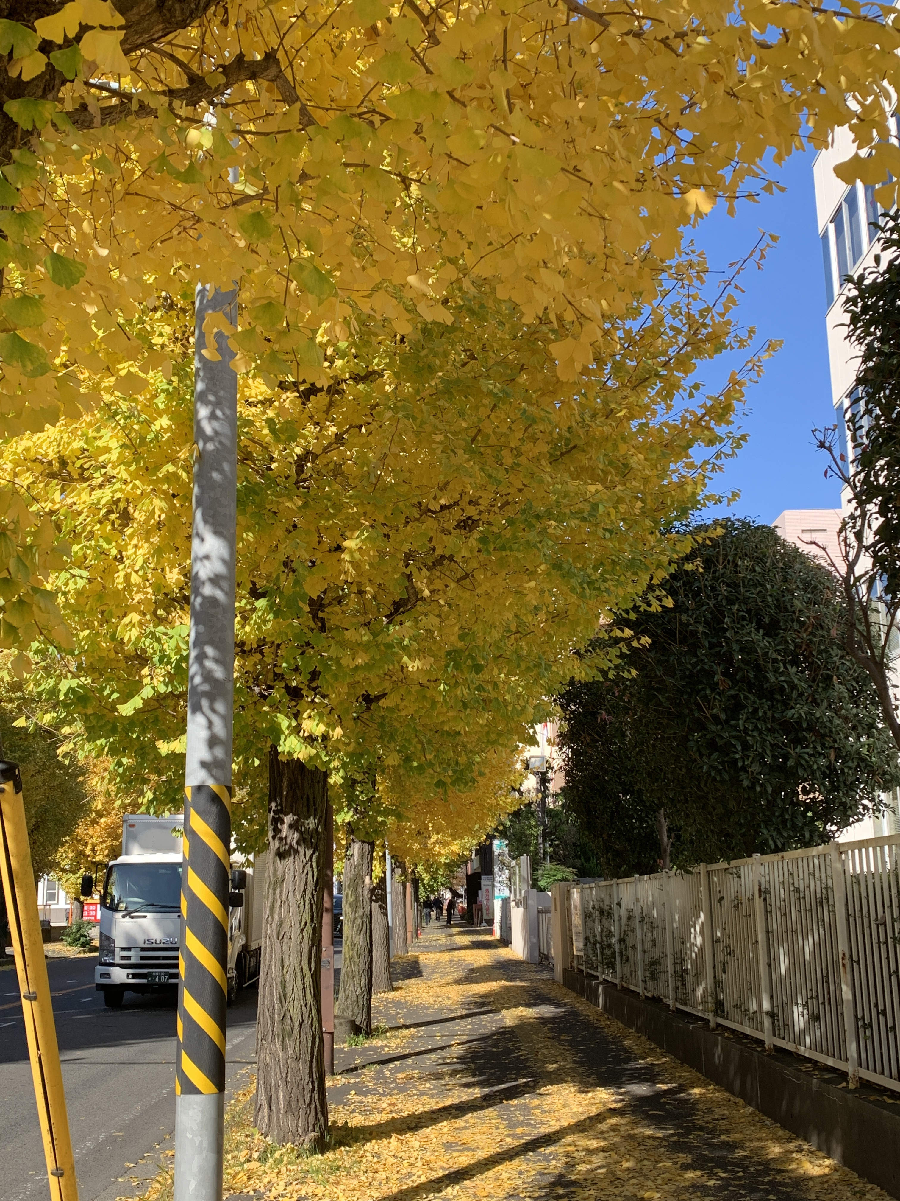 12月に入り工房周辺の銀杏並木が黄金色に輝いています。